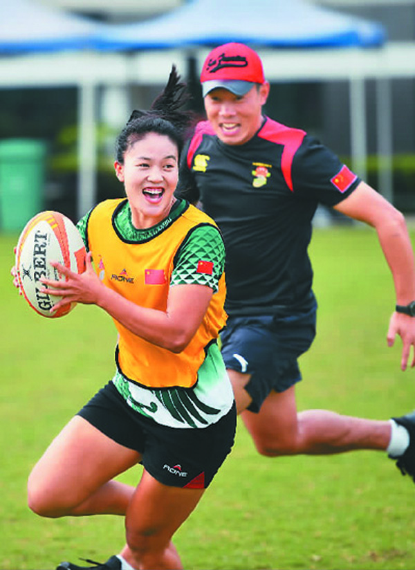 图为中国女子七人制橄榄球队在海口进行集训。 (人民网)