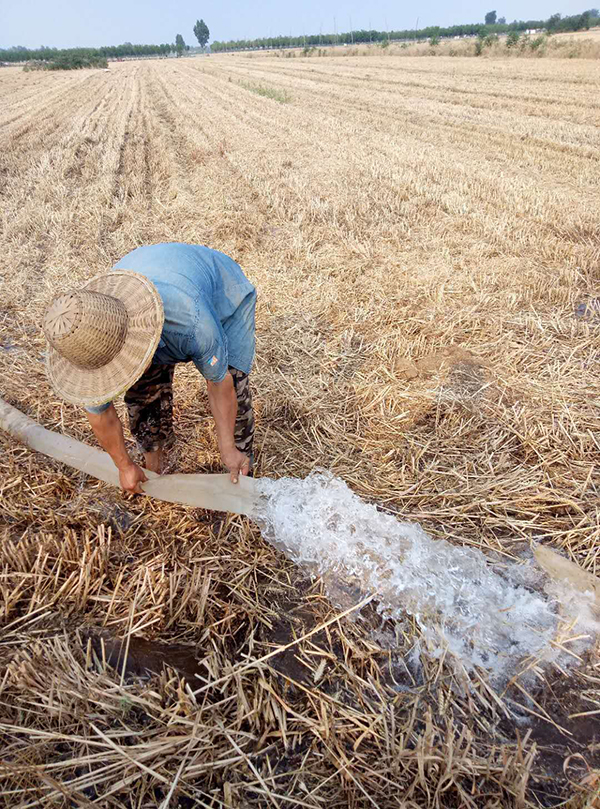 日前,商酒务镇在加快麦收进度的基础上,组织群众抢种秋作物。图为泥河樊村群众浇地种秋。李岳林 李红果