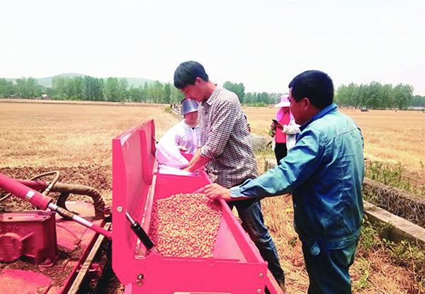 该镇西牛村的马留乾便是靠花生种植较早实现增收致富的一户村民。今年61岁的他种花生已有5年了,他去年种了87亩罗汉果花生,花生收入达到14万元左右,其中花生秧卖了2000多元。“粮贱伤农,种玉米几乎没钱可赚,种花生比种玉米强多啦,播种机把种子、农药、化肥一块下地,成熟时再用摘果机一打,省时省力,还能卖双份钱!”马留乾说出了群众种植花生热情高涨的原因。