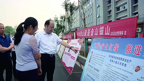 6月25日是第30个全国土地日。6月24日上午,我县在为民路开展了以“节约集约用地 严守耕地红线”为主题的宣传活动。县委副书记、代理县长王代强到现场进行察看。