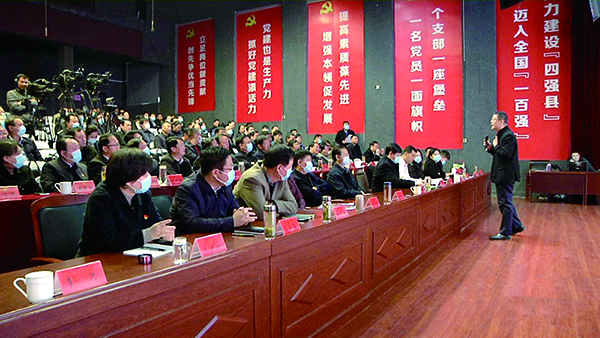 11月28日,我县举办2020年第三期党员干部教育大讲堂。县委书记许红兵、县长王代强、二级巡视员梅玉三、县人大常委会主任刘景华、县政协主席汤红漫等县级领导现场聆听了讲座。县委常委、统战部长申红霞主持。