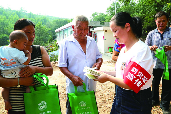 汛期来临,县自然资源局防灾避险宣传员深入观音堂林站罗顶村梁沟组向群众宣讲普及地质灾害防灾避险科普知识。 王双正 摄影