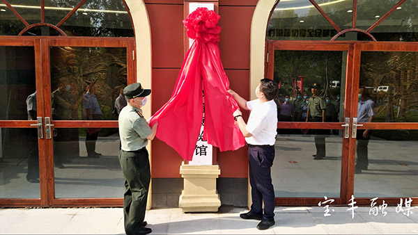 8月1日上午,宝丰县国防教育展览馆在我县八一公园开馆。平顶山军分区政委刘凯、县委书记许红兵共同为展览馆揭牌。县领导马胜昔、陶恒茂、郭鹏飞出席仪式。马胜昔主持开馆仪式,陶恒茂致辞。
