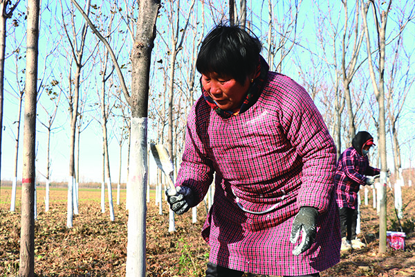 11月23日,赵庄镇组织村民对镇域内80公里廊道的30余万棵苗木进行涂白、修枝,有效增强苗木防寒防虫能力。连日来,该镇结合路域环境整治、美丽乡村建设等工作,加大对全乡林带的巡查力度,积极开展管护,并进行补植补造和树木的除草、灭虫、修枝、涂白等工作。截至目前,已完成树木扶正6000余棵,补植补造林木1300余棵,涂白林木26万余棵,除草修剪2800多亩。秦亚涛 图