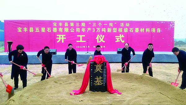 在宝丰县五星石墨有限公司年产3万吨新型核级石墨材料项目开工仪式上,刘江下达开工令,王代强致辞。