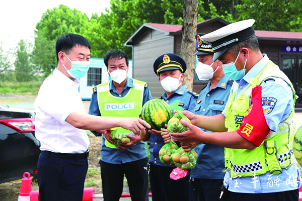 5月31日,在我国传统节日端午节来临之际,县交通运输局、县纪委监委派驻交通运输局纪检组带领系统工会、团委、女工委深入宝丰火车站、高铁平顶山西站、宁洛高速宝丰出入口、郑栾高速平顶山西站疫情防控卡点,对高温天气坚守在疫情防控一线的交通执法人员进行慰问,并为他们送上了粽子、鸡蛋和西瓜。同时希望他们继续发扬特别能战斗、特别能吃苦的交通铁军的优良作风,继续树立牢固的安全防控意识,服务返宝和过往我县的司乘人员和广大旅客,全力以赴守牢我县的大门。 (高磊 文/图)