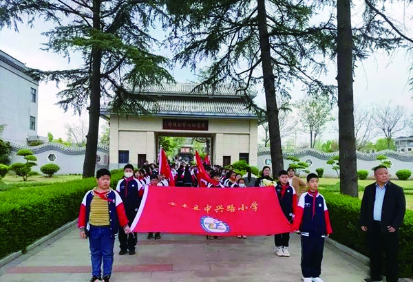 少先队员们怀着无比崇敬的心情来到烈士陵园,向人民英雄纪念碑敬献鲜花,为烈士扫墓,参观宝丰革命纪念馆等,以特有的方式深切缅怀革命先烈。 (中兴路小学)