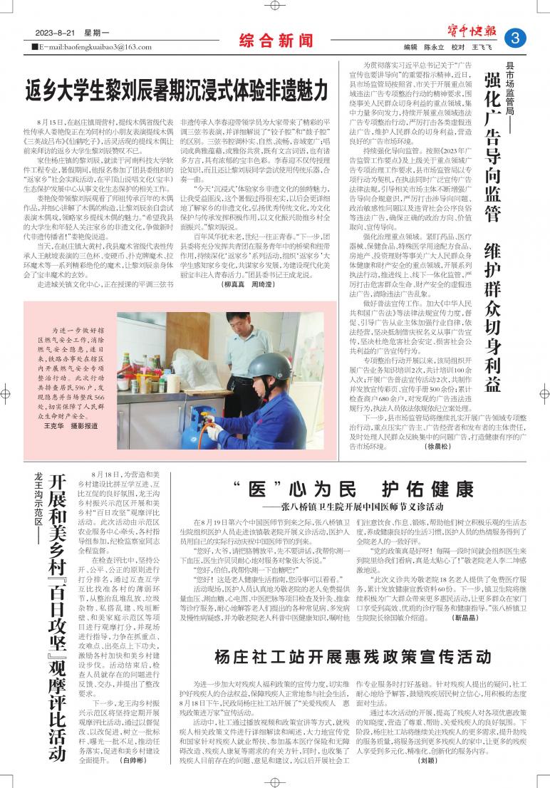 8月17日上午,县委常委、统战部部长姚桃叶督导县委统战部创文工作。 姚桃叶来到冯异路西段、城关...