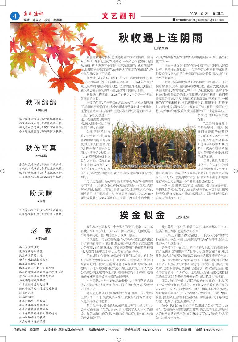 “那天,领导们冒着雨帮俺薅花生,要不然,遇到这连阴雨,俺这个老太婆真不知道今年咋收秋!”10月1...