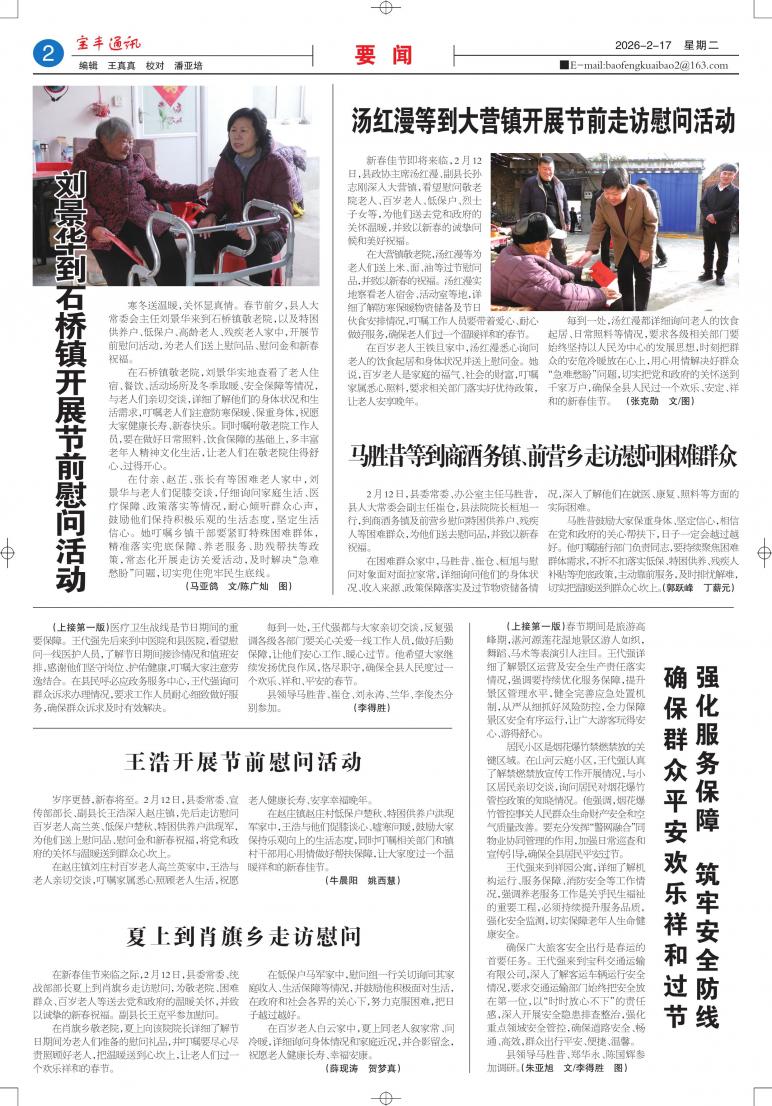 2月14日,市人大常委会副主任、县委书记王代强调研春节期间市场保供和安全生产等工作,向春节期间坚...